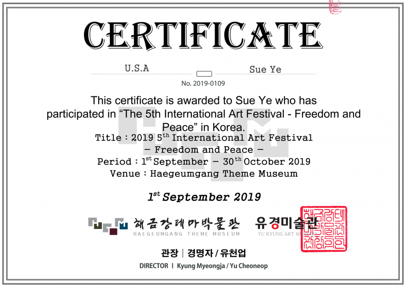 Joined exhibition with 127 artists selected from 37 countries at Haegeumgang Theme Museum for 2019. 5th International Art Festival
