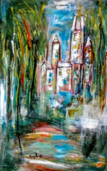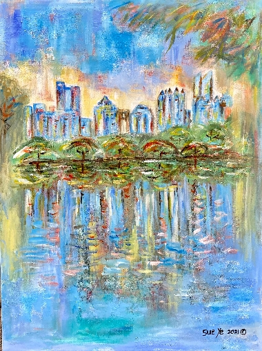 A Park in the City acrylic on canvas 24"x30 " $1500