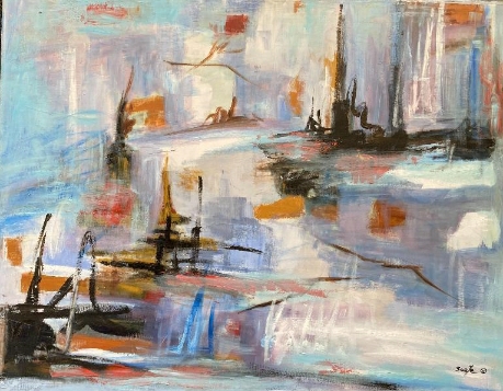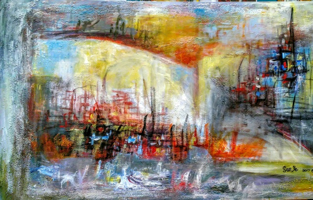 "A Busy Harbor Site" acrylic 30"x40" sold recently . limited edition and similar painting available by request