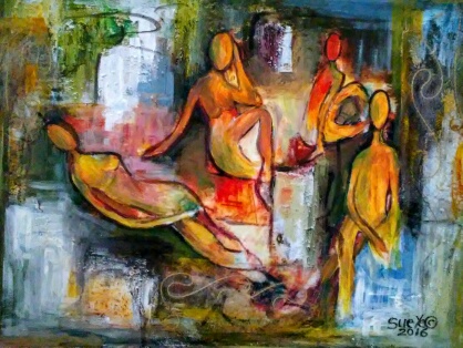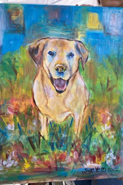 " I feel happy with the beautiful background" acrylic on canvas vas 18"x 24" a commission order. sold