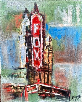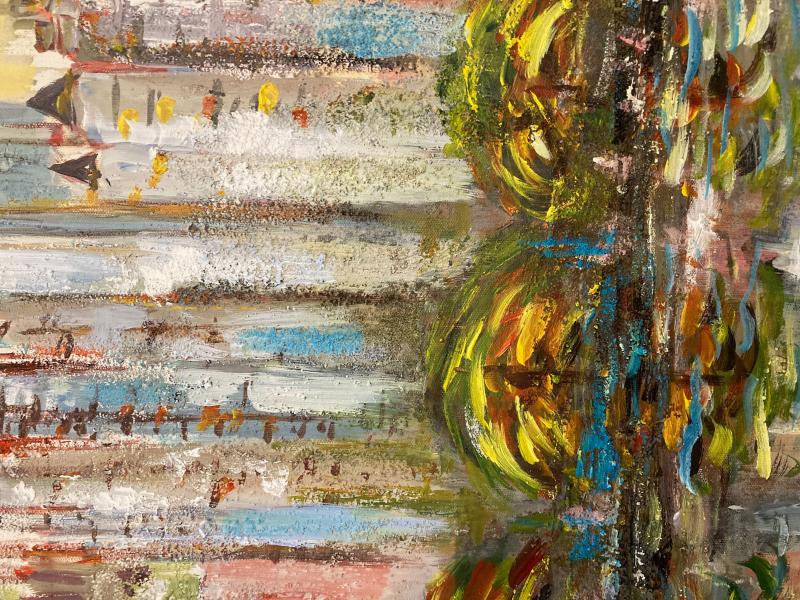City with willow Tree. Acrylic on canvas. 2r"x36" gallery wrap ready to hung Sides painted. Vanished for protection. Certificate provided