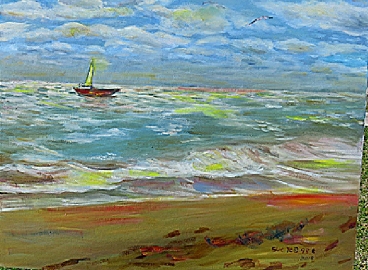 New Seascape Impression #1. Acrylic on canvas. 24" x 36" vanished for protection gallery wrap,cetrtificate with painting